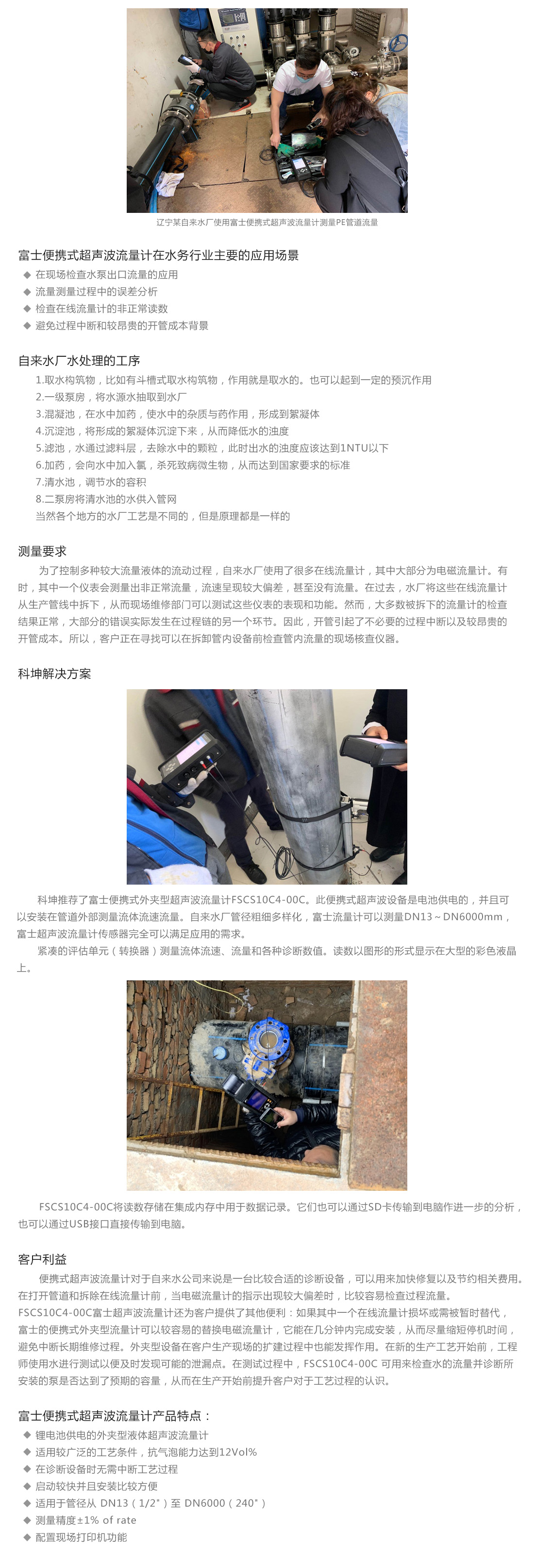 富士便攜式超聲波流量計(jì) - 自來水泵房流量應(yīng)用案例