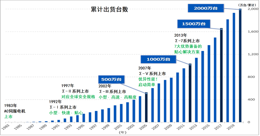 據(jù)本公司日本總部消息,截至2020年8月,安川AC伺服電機(jī)累計(jì)出貨。已突破2000萬臺(tái)。