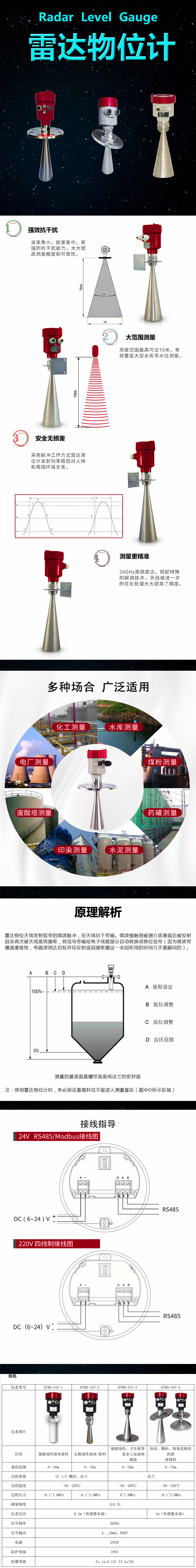 高頻雷達物位計具有能量高,波束角小,天線尺寸小,精度高,優質防水接頭,測量范圍0-70米,使用效果好等特點。